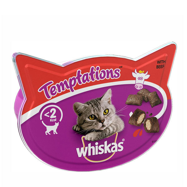 WHISKAS Temptations Beef علاوه بر داشتن جنبه آموزشی به رفع کمبودهای غذایی و حفظ سلامتی و شادابی گربه ها کمک می کند. این محصول دارای پوسته ترد و طعم عالی بوده که برای گربه ها بسیار جذاب است.