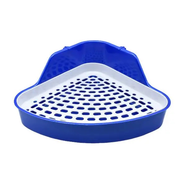 توالت مثلثی برای استفاده خرگوش ها و دیگر جوندگان تهیه شده است. این محصول از جنس محکم و بادوامی بوده و دارای ابعادی با اندازه های 29 × 29 × 14 سانتیمتر می باشد. برای شستشوی آسان تر، این ظرف به صورت دو تکه طراحی شده است. استفاده از این محصول، برای آموزش دستشویی کردن در مکان مناسب بسیار کاربرد دارد. برای این منظور می توانید فضله های حیوان و دستمال آغشته به ادرار او را داخل توالت قرار دهید و هر بار با دادن تشویقی و انتقال فضولات او به داخل توالت، محل درست دستشویی را به او آموزش دهید.