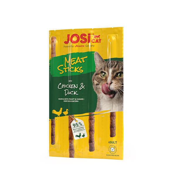 جوسرا تشویقی مدادی با طعم مرغ و اردک Chicken & Duck را ویژه گربه های بالغ تولید کرده است. این محصول دارای بافتی نرم و قابل تقسیم می باشد.