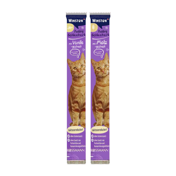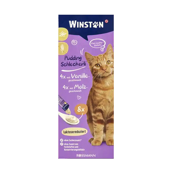 بستنی وینستون در دو طعم وانیل و مالت Vanilla Malt برای گربه های بالغ همه نژادها تولید شده و حاوی شیر کم لاکتوز و کلسیم است.