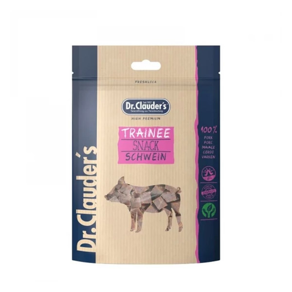 تشویقی دکتر کلادرز Trainee Snack Pork نوعی میان وعده لذیذ با طعم خوک برای همه سگ و گربه ها است که دارای اینولین و مشتقات گیاهی می باشد.