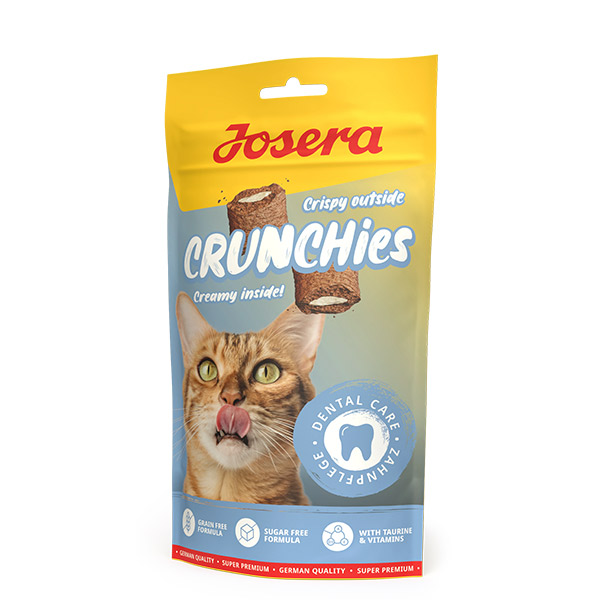 تشویقی دنتال جوسرا Crunchies Dental نوعی کرانچی مغزدار ویژه گربه است که از تشکیل جرم و پلاک های دندانی جلوگیری کرده و مانع بروز بیماری های لثه می شود.