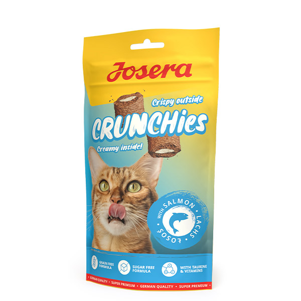 جوسرا تشویقی کرانچی مغزدار با سالمون Crunchies Salmon را برای همه گربه های بالغ با فرمولاسیون سرشار از ویتامین و تائورین تولید کرده است.