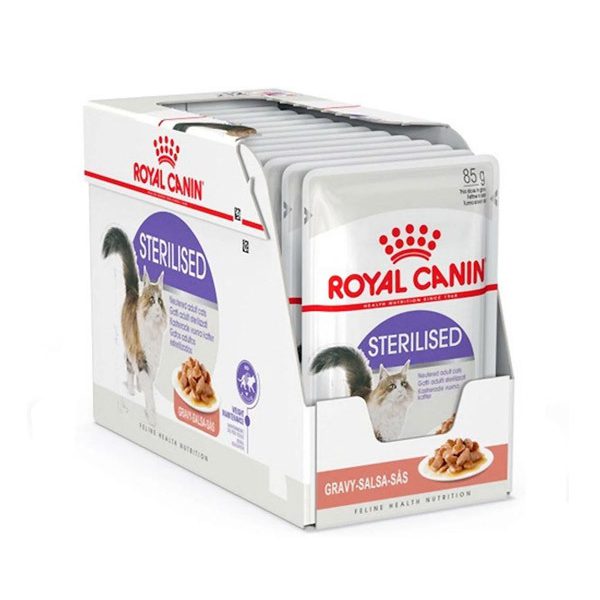 غذای پوچ استریلایزد رویال کنین با بافت خورشتی نرم و ابریشمی برای گربه های عقیم شده فرموله شده است. این محصول به جلوگیری از تشکیل سنگ های ادراری کمک می کند.
