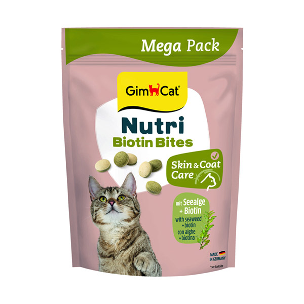 جیم کت قرص مگا پک حاوی بیوتین و جلبک Seealgae & Biotin را با فرمولاسیون سرشار از آنتی اکسیدان و ید برای تمامی گربه های بالغ تولید کرده است.