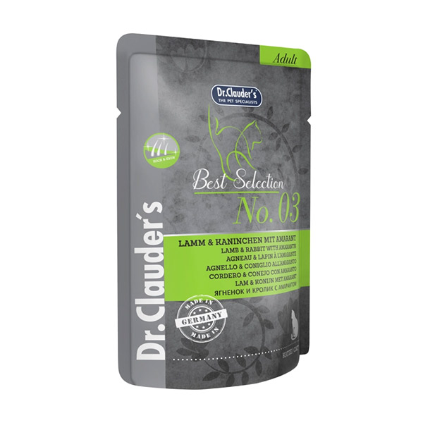 پوچ گربه دکتر کلادرز با طعم بره و خرگوش Lamb & Rabbit حاوی آمارانت بوده و به خوبی می تواند کالری و مواد مغذی مورد نیاز روزانه را تامین کند.