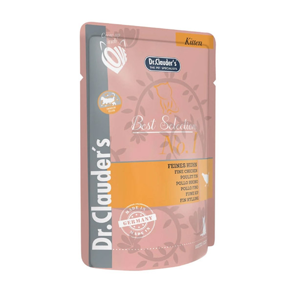 پوچ کیتن دکتر کلادرز با طعم مرغ مرغوب Kitten Chicken یک غذای کامل و مغذی برای بچه گربه ها است که از رشد بهتر آنها حمایت می کند.
