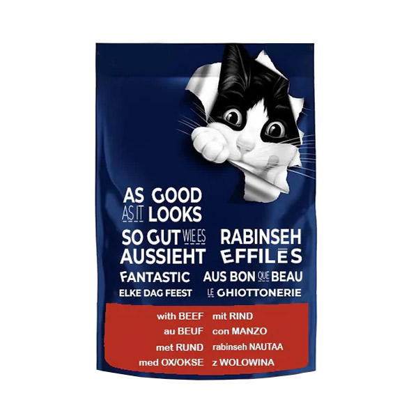 پوچ گربه فلیکس با طعم بیف Beef در سس مخصوص به صورت خورشتی تهیه شده و سرشار از ویتامین های E و D و اسیدهای چرب امگا 3 و 6 می باشد.