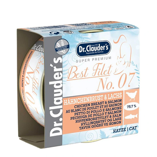 کنسرو گربه دکتر کلادرز Chicken Breast یک غذای کامل با طعم مرغ و سالمون است که سرشار از اسیدهای چرب امگا 3 و 6 بوده و پوست و مو را تقویت می کند.